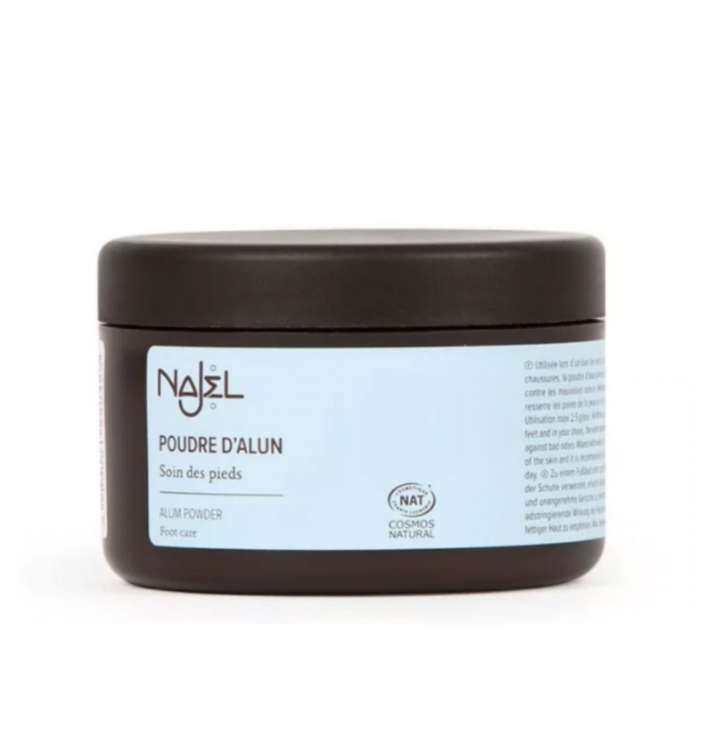 NAJEL recomienda el polvo de piedra de alumbre para el cuidado de los pies.