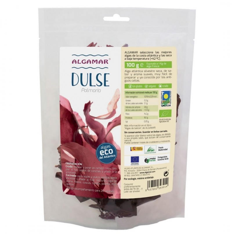 La bolsa contiene 100g de alga dulse en copos.