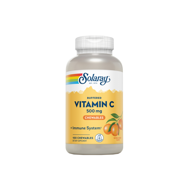 Vitamina C masticable de 500mg con un sabor muy rico. Apta para veganos.