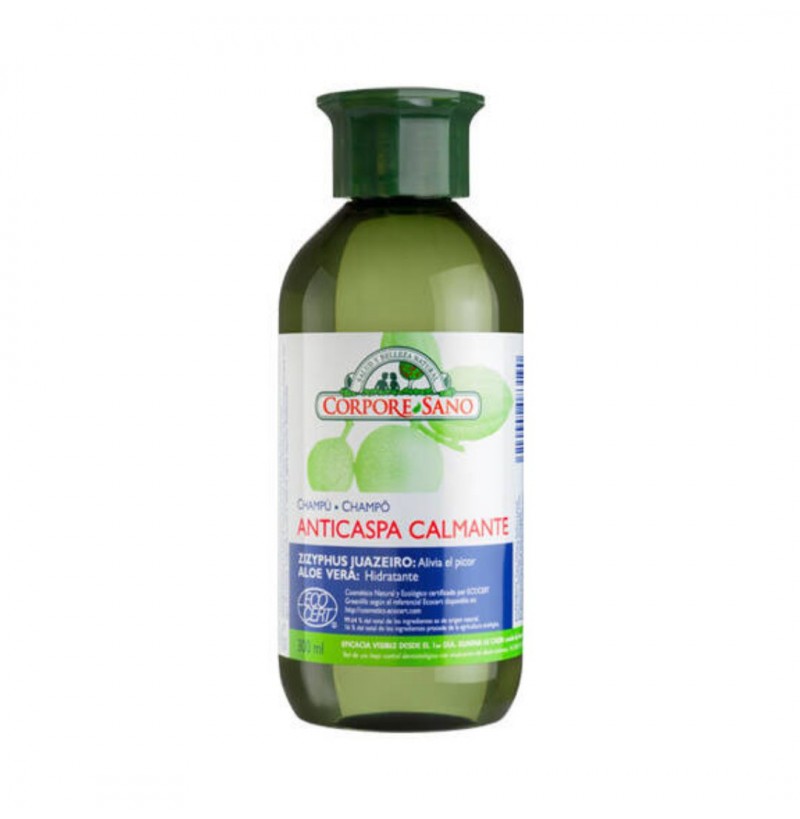 El champú anti caspa calmante de Corpore Sano elimina la descamación de forma efectiva y duradera y tiene un efecto calmante, con resultados visibles desde el primer día.